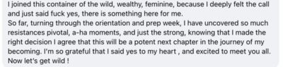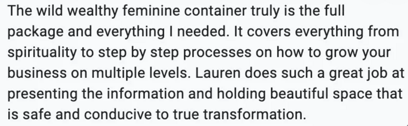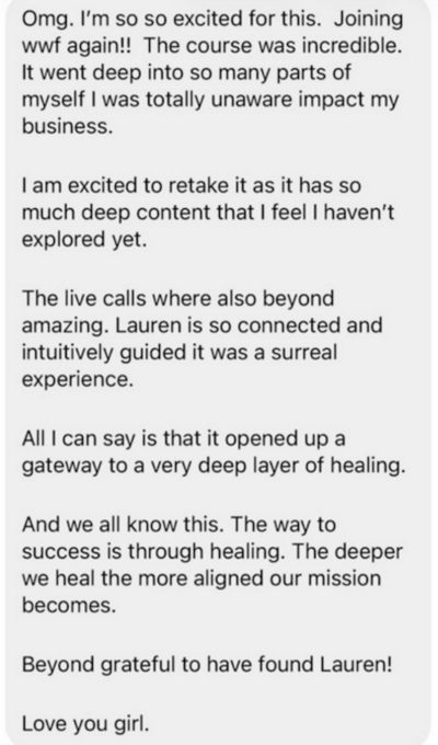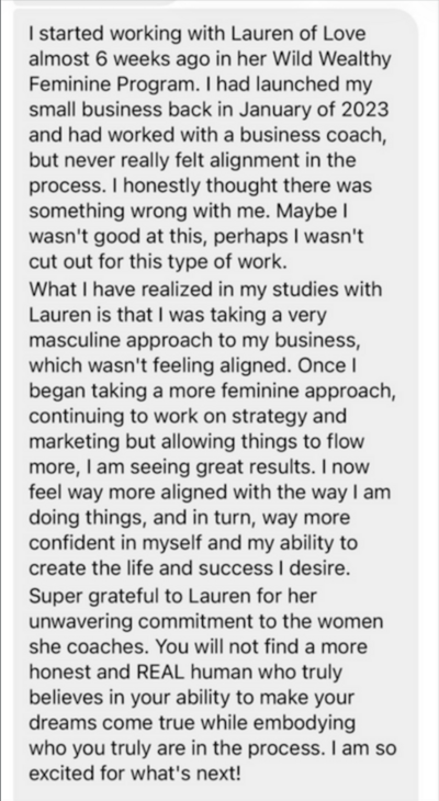 I created Wild Wealthy Feminine to empower other entrepreneurs to know they can do the same... to build soul-aligned businesses rooted in integrity and authenticity (without force, hustle or burnout.) You don’t need to be perfect to make a difference in the world. You just need to fully embrace your own power.